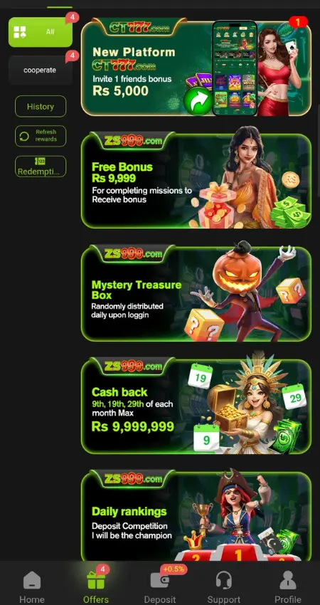 There are special promotions run by ZS999 which may be related to a festival, a big event, or a milestone of the application. Players get the opportunity of grabbing additional coins, cash rewards, or limited-time bonus.