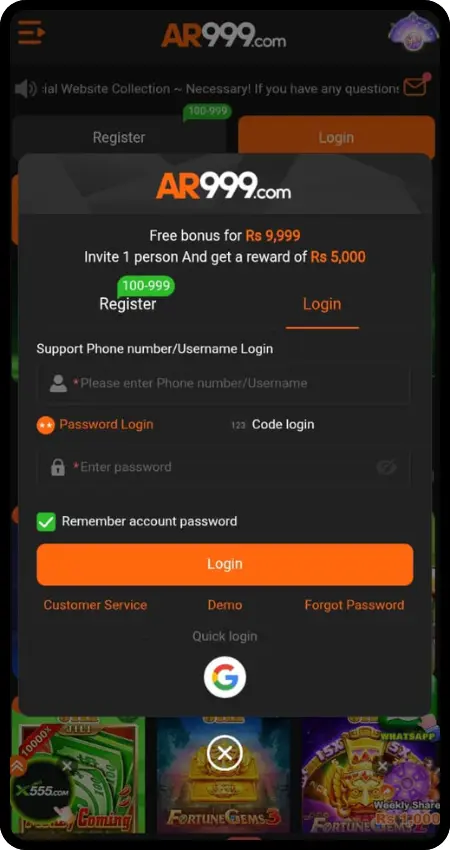 How to Create an Account and Log in AR999 Game App?