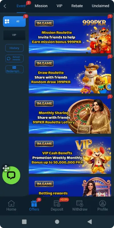 That said, users should maintain realistic expectations. Bonuses and promotions can enhance the experience, but they are not guaranteed outcomes. Playing responsibly and understanding platform rules is important. Overall, 1M plateform is a good option for users looking for a clean and straightforward gaming platform without extra distractions.